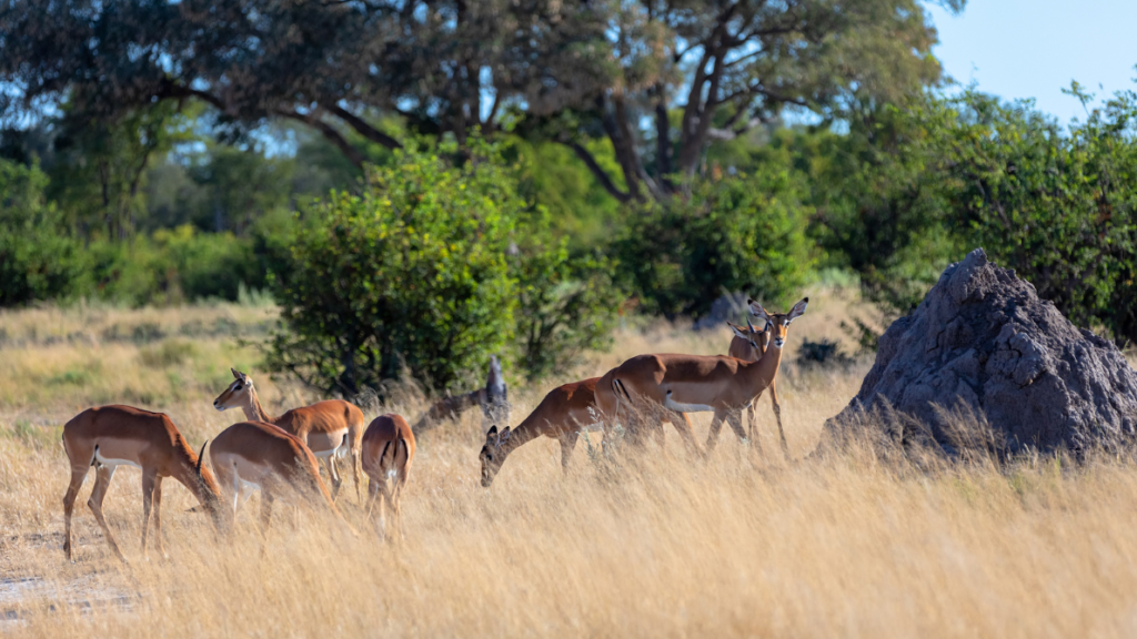 Les lodges adoptent des pratiques zéro-déchet et exploitent des énergies renouvelables, tandis que les visiteurs peuvent participer à des initiatives communautaires locales. Moremi incarne l’équilibre parfait entre aventure, éthique et respect de la nature.