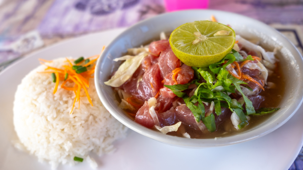 La gastronomie polynésienne repose sur la simplicité et la qualité des produits locaux : poisson cru au lait de coco, fruits tropicaux et plats traditionnels reflètent un équilibre parfait entre mer et terre.