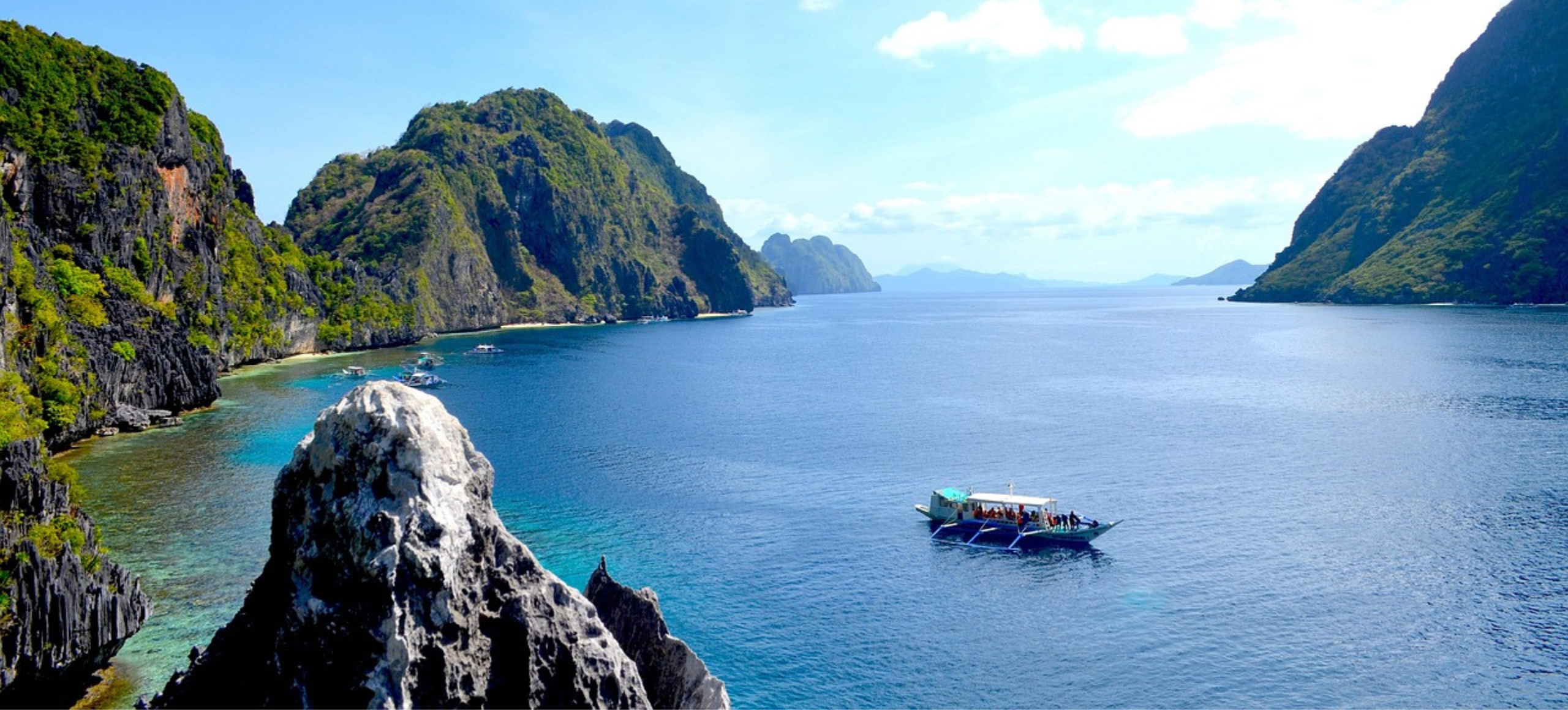 À bord d’un bateau privé, vous partez explorer les trésors de la baie de Bacuit :