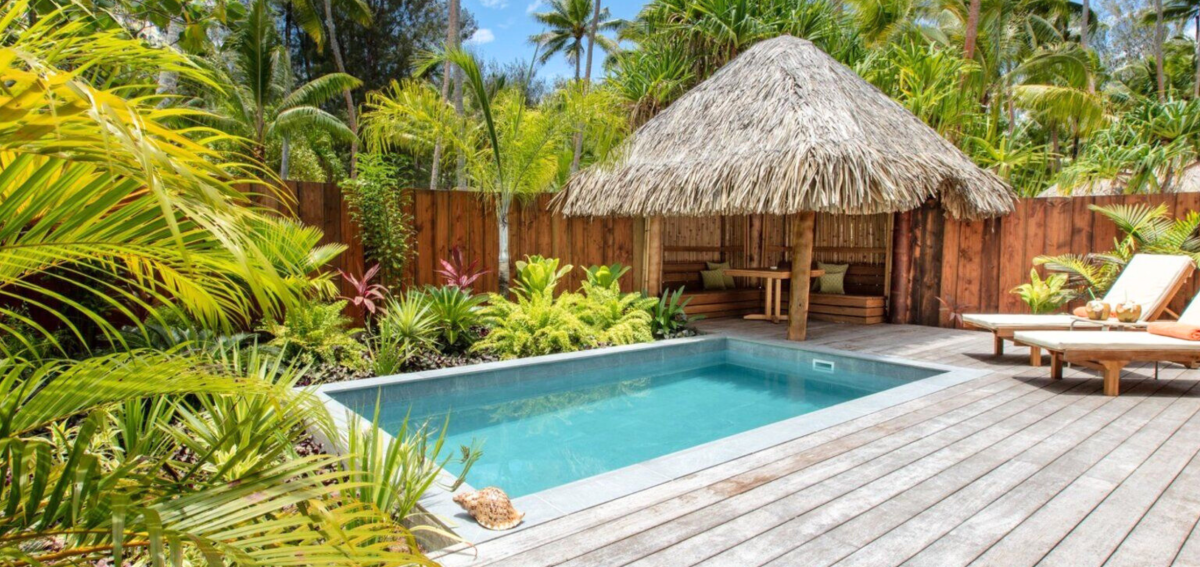 Vous séjournerez en Villa Jardin avec piscine privée, nichée dans un écrin de verdure. Ce cocon de sérénité dispose d’une chambre élégante, d’une terrasse spacieuse avec transats et d’une piscine privative, idéale pour des moments de détente en toute intimité.