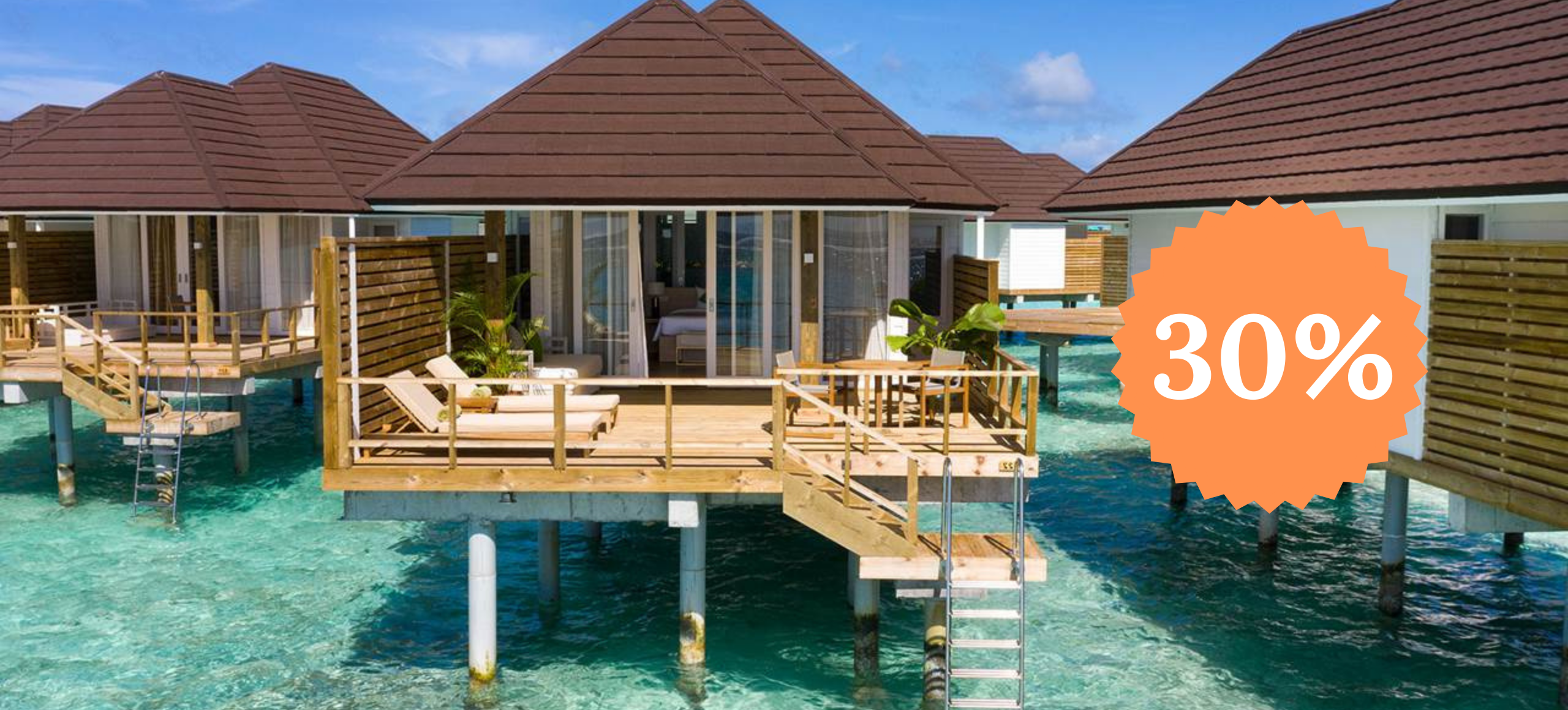 Offre applicable à tous les occupants de la chambre et cumulable avec les offres « -50% de réduction sur la 2e chambre », « Offre Famille », « Offre Séniors », « -50% de réduction sur les transferts en speedboat ».